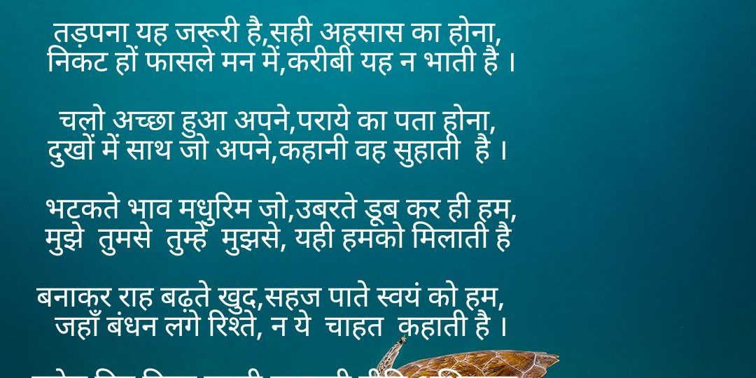 मापनी – 1222 1222 1222 1222 समान्त – आती पदांत – है गीतिका नयन से दूर हो जो तुम,उदासी यह न जाती है । सुखद यादें जहाँ हर पल,हमें यों ही सताती है । तड़पना यह जरूरी है,सही अहसास का होना, निकट हों फासले मन में,करीबी यह न भाती है । चलो अच्छा हुआ अपने,पराये का पता होना, दुखों में साथ जो अपने,कहानी वह सुहाती है । भटकते भाव मधुरिम जो,उबरते डूब कर ही हम, मुझे तुमसे तुम्हें मुझसे, यही हमको मिलाती है बनाकर राह बढ़ते खुद,सहज पाते स्वयं को हम, जहाँ बंधन लगे रिश्ते, न ये चाहत कहाती है । सबेरा नित किया करती,चहकती प्रीति अभिलाषा, महकती शाख वह प्रतिपल,दिवस का मान गाती है । सजाया है करीने से, रखी जो प्रेम की पाती, दिया जो शूल जीवन ने, वही राहें बनाती है । डॉ. प्रेमलता त्रिपाठी